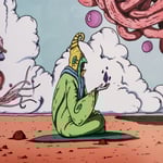 One night as I was drifting into the world of sleep, I found myself sitting in a desert observing the clouds on the horizon. I was enveloped in a black shadow as a huge pyramid-jelly fish creature floated overhead. Dozens more were adrift along the skyline, chanting in a deep, otherworldly voice as they moved.